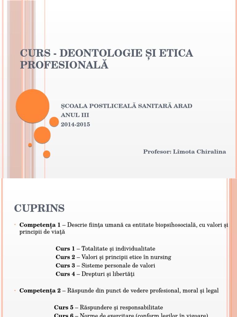Curs 1 totalitate i individualitate curs 2 valori i principii etice n nursing curs 3.