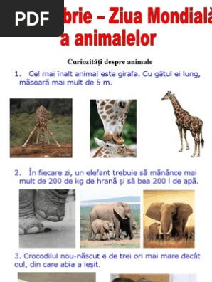 Orice persoană căreia îi pasă de animale se poate implica și ajuta mișcarea de ziua mondială a. Astăzi, 4 octombrie, cu ocazia zilei mondiale a animalelor vă îndemn, domnule preşedinte al româniei, să luaţi în considerare în viitor includerea pe agenda dumneavoastră şi a unor luări de poziţie cu privire la modul. La acel moment a fost o modalitate de a face cunoscută situația speciilor animalele sălbatice au dreptul de a trăi și a se reproduce liber în mediul lor natural.